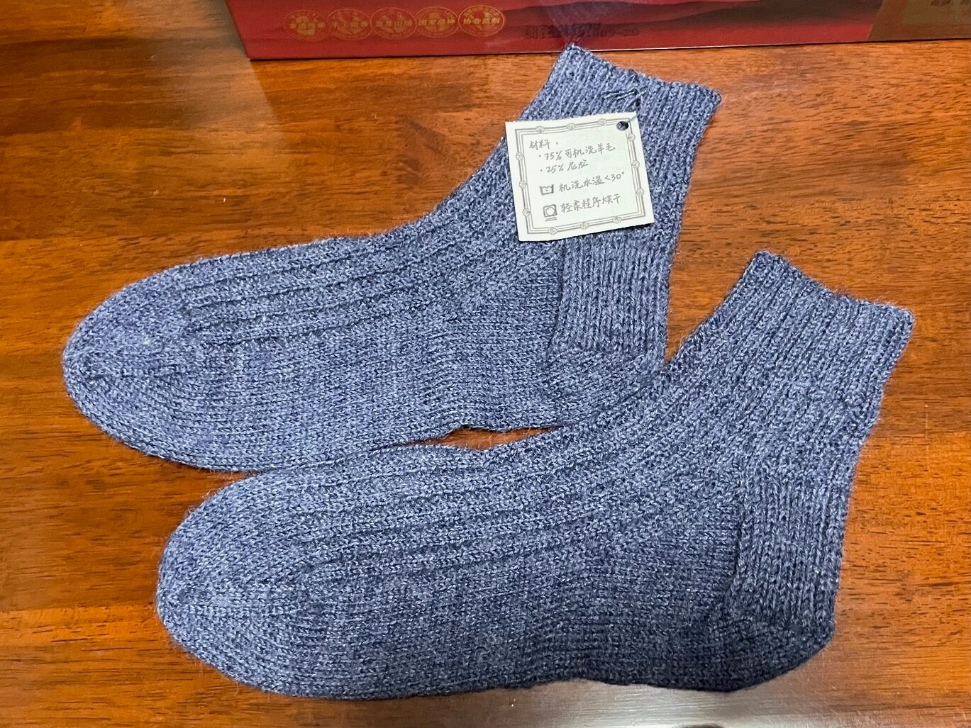 These two socks are the holiday gifts for my mom and dad. It took some time for me to find the right patterns and measure the size, but other than that, nothing complicated and both were finished quickly in DPN.
