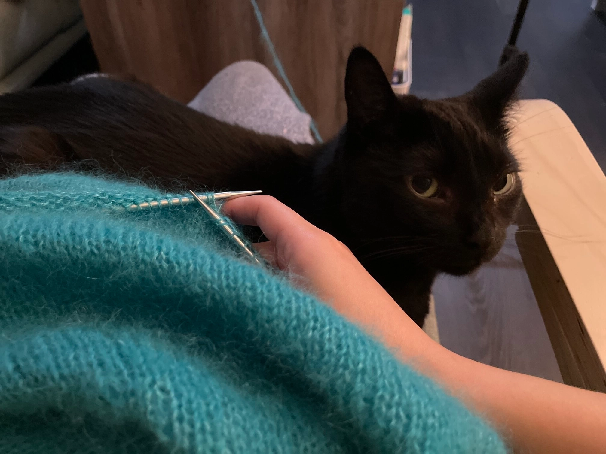 I knitted appx. 7’’ for the left sleeve, but after trying it on, I felt it didn’t have enough positive ease to my liking so I unravelled it to the point where it’s 60 sts with appx. 5.3’’ width (measured flat), and decided not to decrease, unlike the pattern suggested. I think I’ll knit the same way as my Ranunculus Sweater by adapting the diagonal cuff and ending with an i-cord bind off.